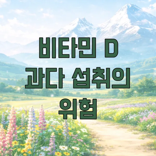 비타민 D는 햇볕을 통해 자연적으로 합성되거나 음식으로 섭취하기 때문에 과다 섭취의 위험이 낮지만, 고용량의 비타민 D 보충제를 장기간 복용할 경우에는 주의가 필요해요. 비타민 D 수치가 100 ng/mL (250 nmol/L) 이상 으로 너무 높아지면 고칼슘혈증이 발생할 수 있습니다. 이는 메스꺼움, 구토, 변비, 피로감, 심하면 신장 결석이나 신부전으로 이어질 수도 있어요.